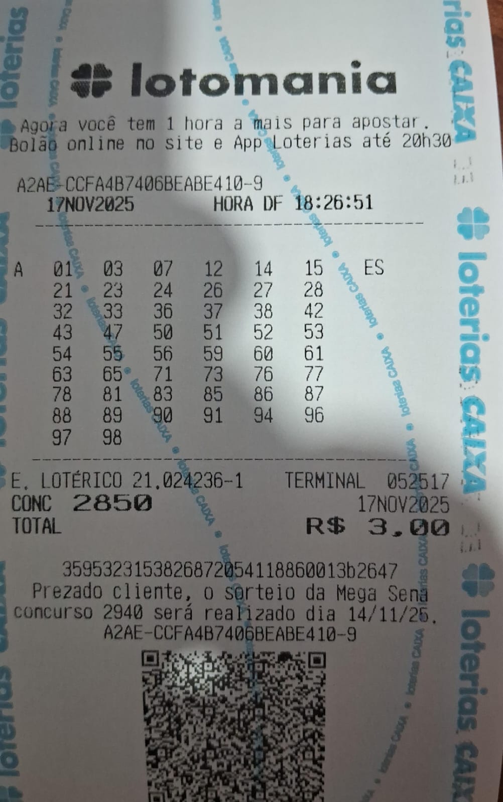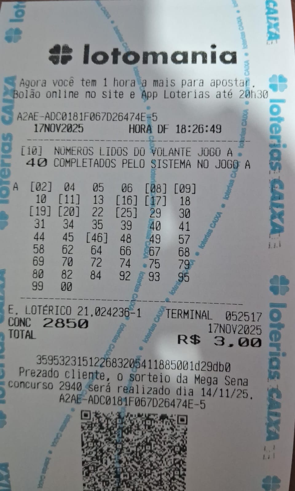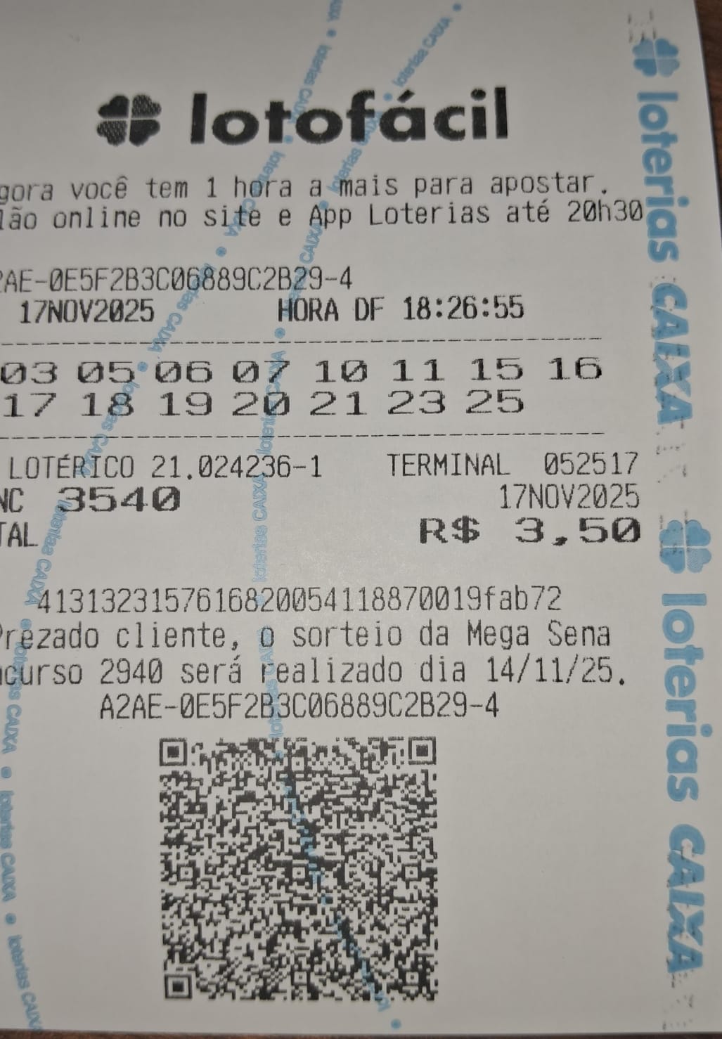 Bilhete LOTOFÁCIL cortesia das EMPRESAS PATROCINADORAS.