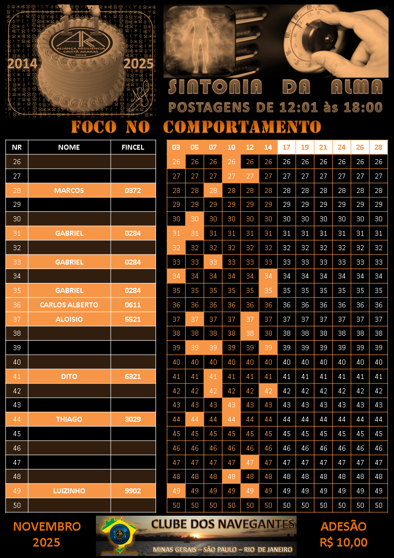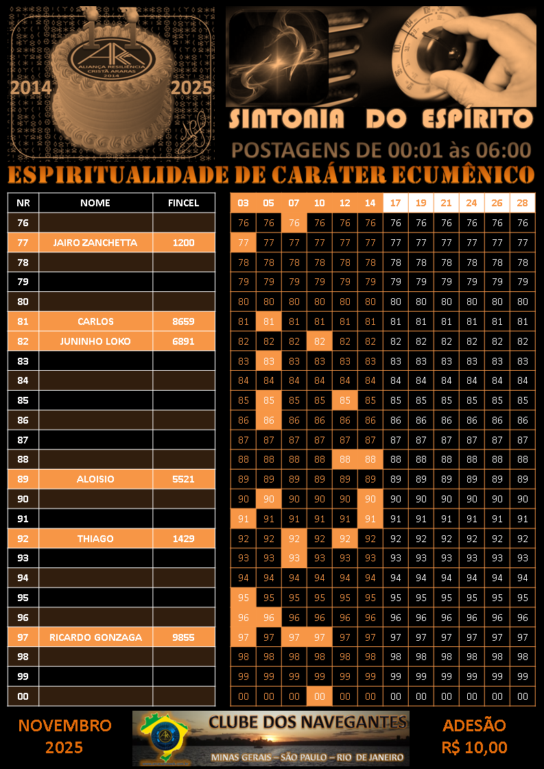 LISTA VÁLIDA PARA TODOS OS SORTEIOS DO MÊS DE NOVEMBRO